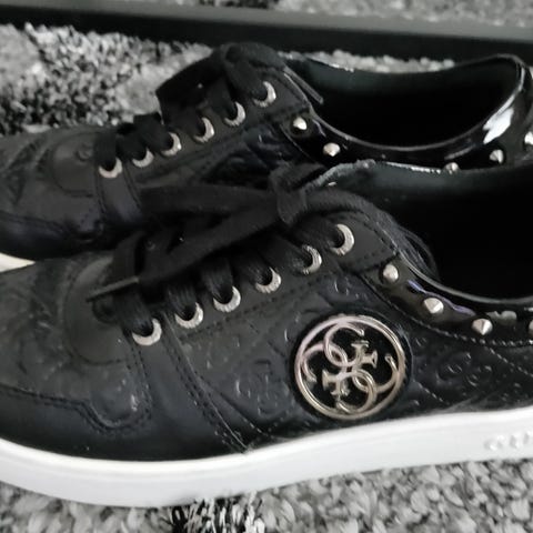 Myydään siistikuntoiset mustat GUESS-tennarit. Kengissä on upea strassikivillä koristeltu 'G'-yksityiskohta sivussa ve metalliset logot nauhoissa.