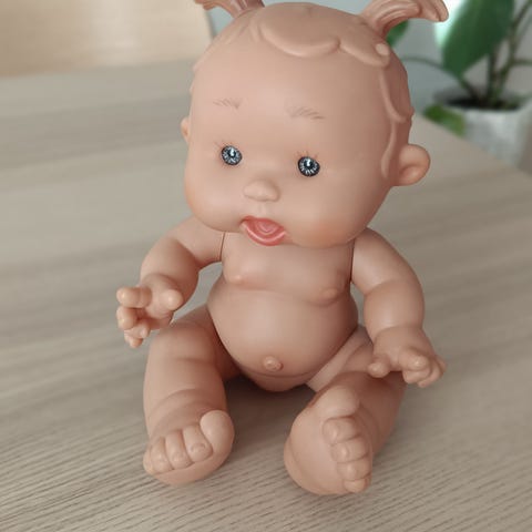 Berjuan My Girl 35 sm ✨ Kokonaan vinyyliä – miellyttävä koskettaa, hennon vaniljan tuoksuinen. Materiaali on turvallinen ja kestävä. 📏 Pituus: 35 cm – täydellinen koko lasten leikkeihin. 🇪🇸 Valmistettu Espanjassa – alkuperäinen espanjalainen Berjuan-nukke, korkealaatuista viimeistelyä. Aikuisen keräilijän kokoelmasta.