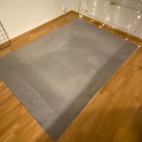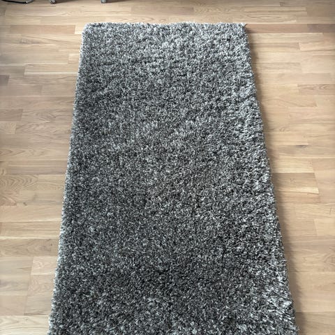 Jysk nukkamatto harmaansävyisenä. Matossa on pehmeä, pitkä nukka ja yksivärinen, hieman eläväpintainen kuosi. Sopii esimerkiksi olohuoneeseen tai makuuhuoneeseen tuomaan pehmeyttä lattialle. Taustapuoli on tasainen ja reunat kantattu siististi.