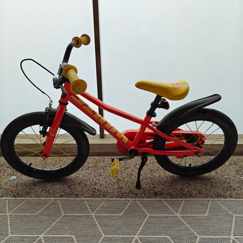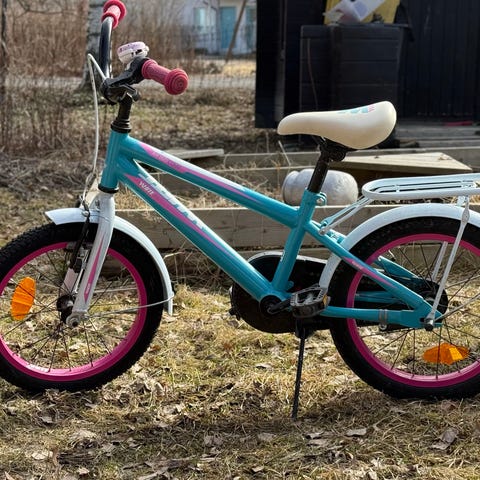 Puky lasten polkupyörä 16" vihreä. Pyörässä on 16 tuuman renkaat, matala runko helpottamaan kyytiin nousua, jalkajarru sekä käsijarru. Varusteluun kuuluvat etu- ja takalokasuojat, ketjusuoja, tavarateline takana sekä seisontatuki. Ohjaustangossa on pehmuste ja heijastimia on rungossa ja polkimissa. Polkimet otettu irti varastoinnin takia, kiinnitetään pyörään takaisin. Tule katsomaan ja koeajamaan. ☀️🚲