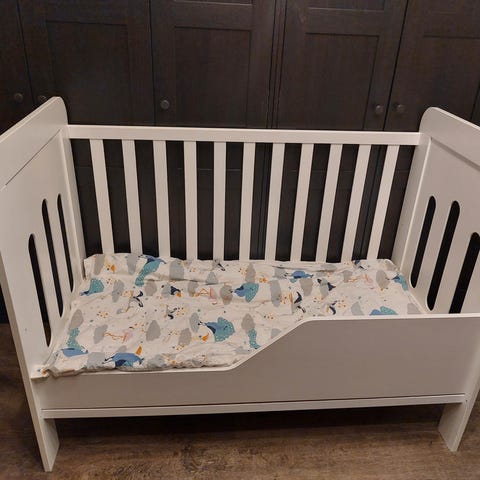 120 x 60, noin 6 kuukautta ollut käytössä. Ei käytön jälkiä, eläin vapaa koti. Yhdeltä sivulta saa 3kpl pinnoja irti jolloin sängystä pääsee pois. Pohjan saa myös 3 eri korkeuteen riippuen vauvan iästä. Pohja levy on vaihdettu tukevampaan vaneri pohjaan.