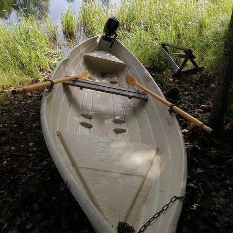 Suvi 460 Suvi 460 on perinteinen, hiekkahartsikölillä varustettu savolaismallinen soutuvene, jossa on lukittava säilytystila. Turvallinen, uppoamaton vene mökki- ja kalastuskäyttöön. Rungon muotoilu takaa paremmat ajo-ominaisuudet moottoria käytettäessä. Tämä Suvi on kevyt soutaa vaikka pitempiäkin matkoja. Lyhytrikiselle moottorille. TEKNISET TIEDOT Pituus 4,60 m Leveys 1,41 m Paino 85 kg Kantavuus 3 hlö Moottorisuositus 2,5 hv NOPEUSTAULUKKO Teho 1 hlö 2 hlö 2,5 HV 5 s 5 s VAKIOVARUSTEET Hankaimet Hiekkahartsiköli Kuminen törmäyslista Lakatut airot Lukittava säilytystila Moottorikaivo Tyhjennystulppa LISÄVARUSTEET Satamakuomu Sivukaide 100 cm rst Solumuovinen istuinsarja