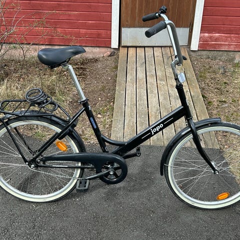 Helkama Jopo naisten maantiepyörä 24" vanteilla. Pyörässä on matala runko, joka helpottaa kyytiin nousemista, sekä suora ajoasento. Varustettu etukorilla ja lokasuojilla. Sopii erityisesti lyhyemmille ajajille tai nuorille, joille 24" rengaskoko on sopiva. Värinä punainen sävy.
