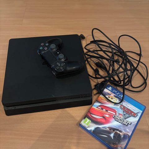 Mukana tarvittavat johdot. Konsolille asennettuna Sly 2 ja Sly 3. Ohjain toimii vain langattomana tuon donglen kanssa. 3kk käytön aikana konsoli on käynnistettäessä kahdesti ilmoittanut, ettei asemassa ole levyä, vaikka siellä sellainen oli. Korjautui ottamalla levy ulos ja laittamalla takaisin. Uusin päivitys asennettu.