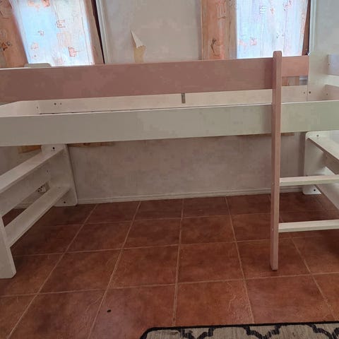 Muutaman kerran nukuttu, täysin uutta vastaava mäntyinen pikkuparvi. Kuultovalkoinen. Alla säilytystila 200x88x75. Painoraja max 80kg. Patja tahraton ja siisti. Hinta ilman patjaa 100€.