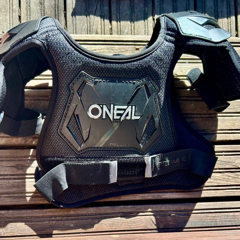 O’Neal panssaritakki, väri musta. Takissa on suojat rintakehälle, selälle, olkapäille ja kyynärvarsille sekä säädettävät tarrakiinnitykset hihoissa ja vyötäröllä. Soveltuu esimerkiksi maastopyöräilyyn, motocrossiin tai muuhun lajiin, jossa tarvitaan ylävartalon lisäsuojaa.