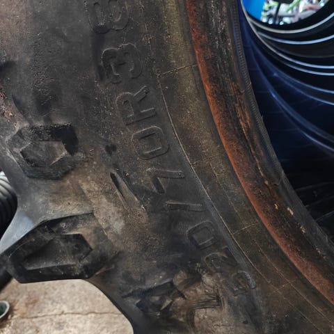Valtran vannekehillä Kleber renkaat. Pintaa kohtalaisesti. Koko 18.4R38, 460/85R38.