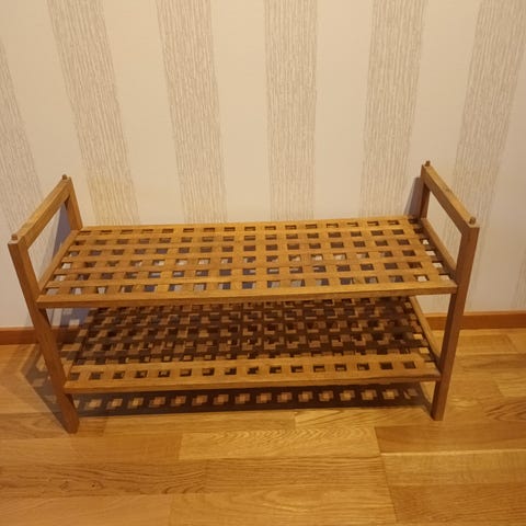 Jyskistä pari vuotta sitten ostettu istuttava kenkäteline. Hyvässä kunnossa vaikka päivittäisessä käytössä ollut. Nyt muuton myötä ei mahdu enään asuntoon joten myydään pois.