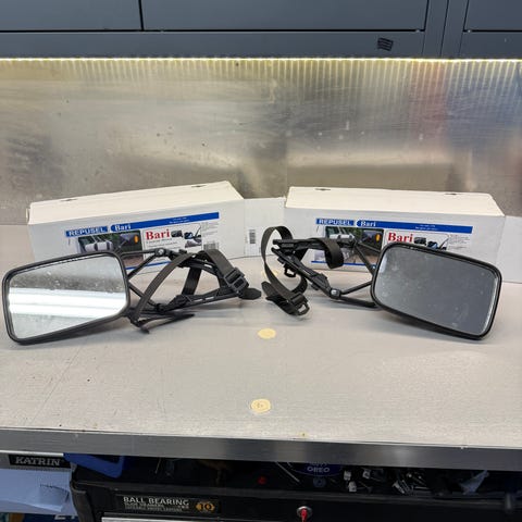 Hyvä Caravan-peilipari asuntovaunun vetoon lisäpeilipariksi. Sopii tosi moneen autoon. Helppo irrottaa pelkkä peiliosa, ja jättää kiinnike valmiiksi peiliin.