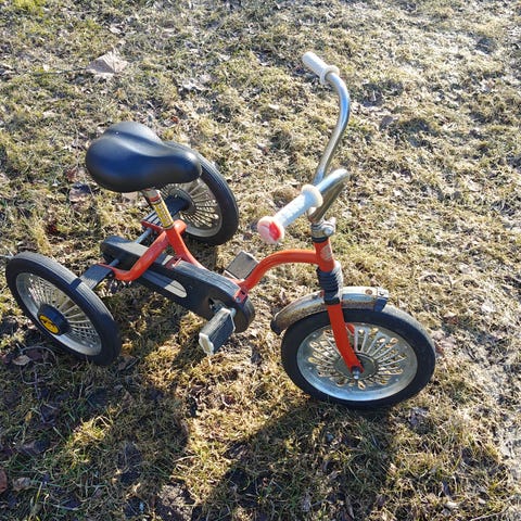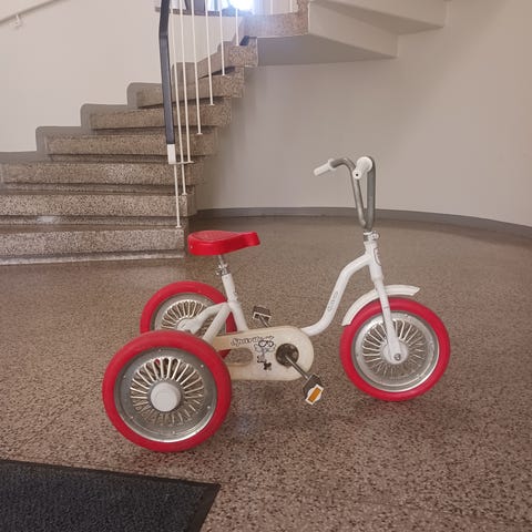 Lasten kolmipyörä. Käy ja kukkuu. Pienellä laitolla huippukuntoon. Pyörässä on metallirunko, kolme pyörää ja ohjaustanko käsikahvoilla. Sopii pienille lapsille pihan ja pihatien ajoihin sekä tasapainon harjoitteluun. Vain nouto.