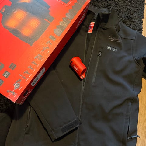 Milwaukee lämpöhuppari hyvässä kunnossa ja lämmitys toimii oikein, hupparin lämmitykselle voi myös ladata sovelluksen jolla voi säätä lämmön voimakkuutta tarkemmin vaikka itse hupparissakin on kolme lämmitystehoa. Huppari on kokoa M. 3.0Ah mukaan kauppaan