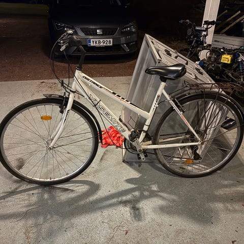Siitä hyvä käyttöpyörä kauppareissulle. Ei uusi enää, muttei ole hinnallakaan pilattu. Ajelin viimekesän kauppareissut ja hyvin palveli. Pyörä on taloyhtiön pyörävarastoon joskus hylätty ja sieltä kautta päätynyt itselle käyttöön kun kukaan ei sen perään ollut kysellyt..