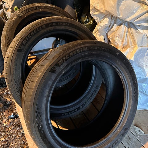Hyväkuntoiset kesärenkaat, pintaa vielä mukavasti - liekö 6mm suunnilleen. Tasaisesti kuluneet. Paistoviikko 14/21, ajamatta lämpimässä pari edellistä kesää.