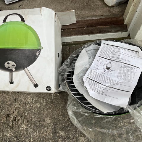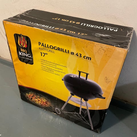 Uusi ja käyttämätön turkoosi pallogrilli. Halkaisija noin 36,5cm ja korkeus ilman kantta noin 27,5cm. Kannessa kahva, höyrynpäästösäädin sekä tukevat suojatut kiinnityshakaset, ritilässä irroitettava nostinkahva, irroitetava hiilikaukalo.