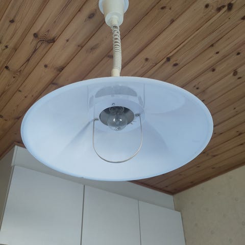 Annetaan toimiva ulkovalaisin ja valaisimen varjostin, josta metallikiinnikeet vääntyneet rikki. Näppärä voi saada korjattua/juotettua ehjäksi. Käytetty terassilla katoksen alla, viime vuodet ollut varastossa.