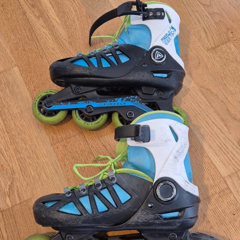 Firefly lasten rullaluistimet, koko 33-36 - koko säädettävissä. Väri musta vihreillä yksityiskohdilla. Pehmeä varsi ja säädettävät kiristykset nauhoilla, soljella ja tarralla. Mukana Salomon Protective 3 Pack -suojasarja koossa S, jossa polvi-, kyynär- ja rannesuojat rullaluisteluun.