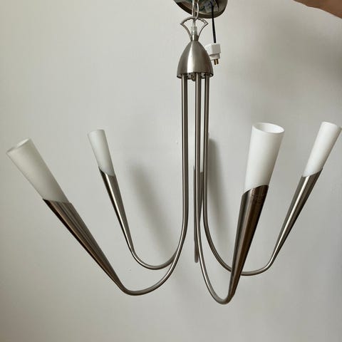 Aty Valaisin kattokruunu, jossa viisi valonlähdettä. Runko on messingin värinen metallia ja varjostimet mattapintaista lasia. Valaisin kiinnitetään kattoon kattokupilla ja ketjulla. Sopii yleisvalaisimeksi esimerkiksi olohuoneeseen, ruokailutilaan tai makuuhuoneeseen. Polttimokanta ja sähkötekniset tiedot kannattaa varmistaa valaisimen merkinnöistä ennen käyttöönottoa.