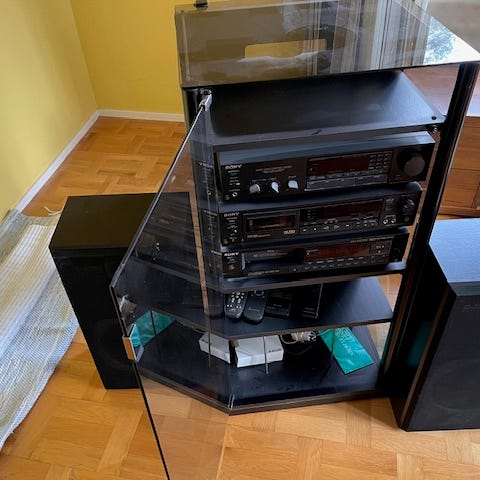 Sony stereosarja kaiuttimilla (DVD, kasetti, CD)