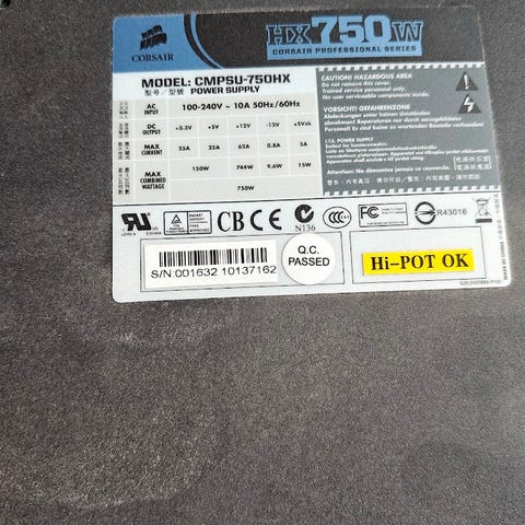 Corsair RM750x 750W 80 PLUS GOLD -modulaarinen ATX-virtalähde. Hyväkuntoinen ja aina toiminut normaalisti.