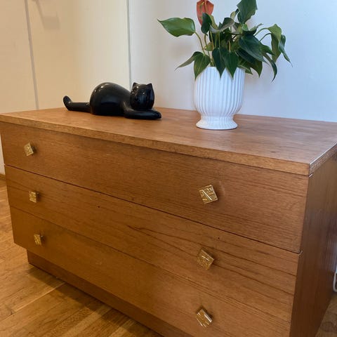 Lehtiteline kaunista 60-lukua. Alunperin Hollannista. Tiikkiviilua. Metallikahva ja puiset jalat. Viilussa pieni lohkeama, joka ”paikkamaalattu” samaan sävyyn (ks. kuva). Nouto Haagasta.