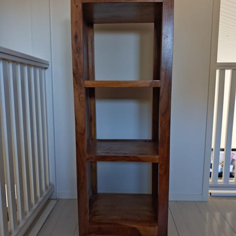 Täyspuinen jykevä acazia tv-taso. Käytön jälkiä, yleisilme erittäin siisti.
