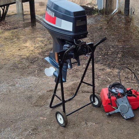 Juuri huollettu ja hienokuntoinen Yamaha (6hv) joka piristetty 8hv:ksi. 2-tahtinen ja 2-sylinterinen perämoottori. Tämä malli on lyhytrikinen ja tunnetusti tehokas ja vääntävä. Myös kevyt vain 27kg