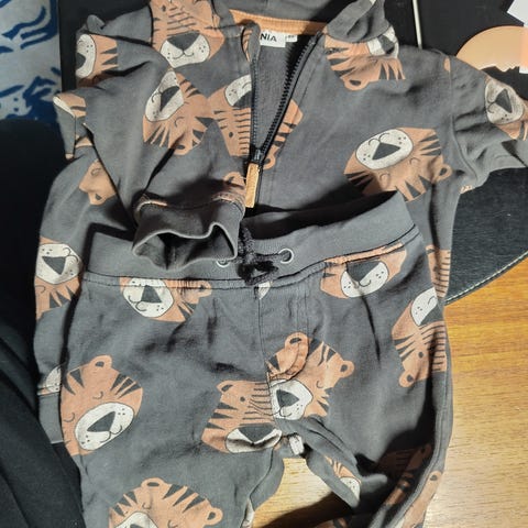 Siniset oloasu ja yöpuku 86 sekä vihreä autopaita reilu 80, hyvässä kunnossa, hajusteeton pesu.