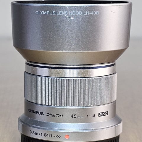 Olympus M.Zuiko Digital 45mm f/1.8 mustanvärinen objektiivi Micro Four Thirds -järjestelmäkameroille. Soveltuu hienosti henkilökuviin, hämäräkuvaukseen, luontokuvaukseen jne. Näppärän kokoinen ja erittäin valovoimainen. Upea bokeh!