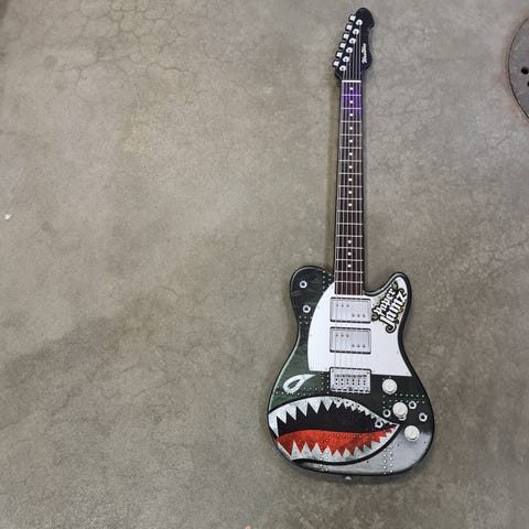 Myydään lapsen leikkeihin sähkökitara ja pieni vahvistin. Mukana tulee olkahihna, kitarapussi, plektra ja kaapeli vahvistimeen. Vahvistimessa on äänenvoimakkuuden ja sävyn säätimet sekä liitännät kitaralle ja kuulokkeille, toimii 9V paristolla ja nykyisessä vielä virtaa. Soveltuu soittamisesta innostuneelle pikku muusikolle leikkeihin, mutta ei musiikkiopintoihin tms. "vakavampaan" käyttöön.