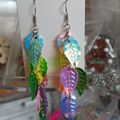 Lehdet korvikset pinkki lila violetti helmi helmet uniikit lehdenmuotoiset kesäiset keväiset korvakorut
