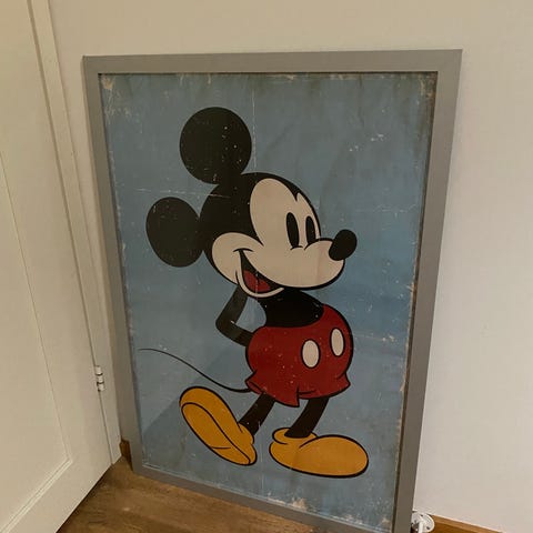 Nyt myynnissä tyylikäs taulu Mickey Mouse hahmosta, kehystettynä.