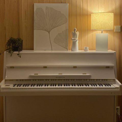Piano on juuri viritetty ja toimii kauttaaltaan. Kuvassa oleva penkki kuuluu kauppaan.