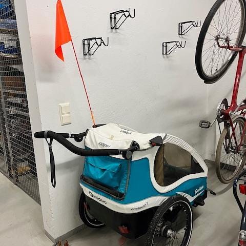 Myydään Qeridoo Sportrex2 -pyöräkärry ja kaksi kiinnitysadapteria.