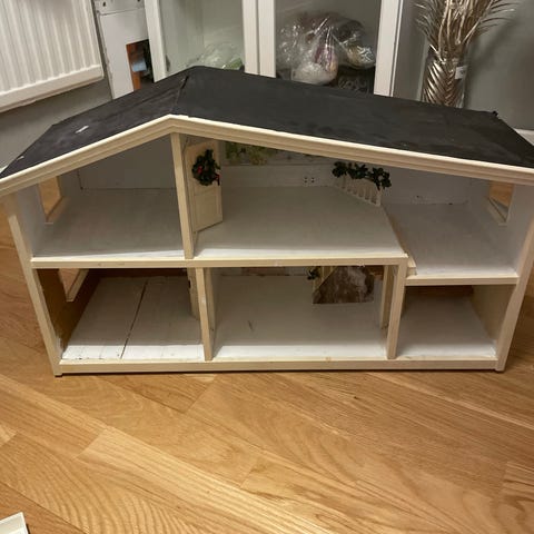 Ahkerasti leikitty Lundby-nukkekoti seuraaville leikkijöille. Mukaan tavaroita, huonekaluja ja mattoja.