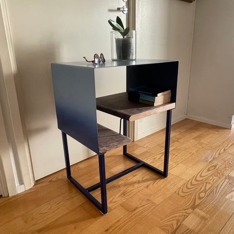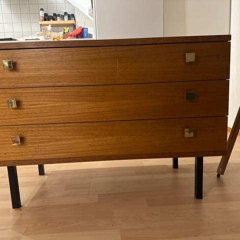 Senkki arviolta 60-luvulta. Kunnostettu huolellisesti, mm. takalevy uusi. Sävy vaalean vihreä, tarkemmin pistaasi. Kunto muutoin erinomaisen hyvä, mutta vetimet eivät ole samanlaiset, katso kaksi viimeistä kuvaa.