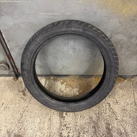 Polttokumiksi kulunut Michelinin 150-70/17 kumi