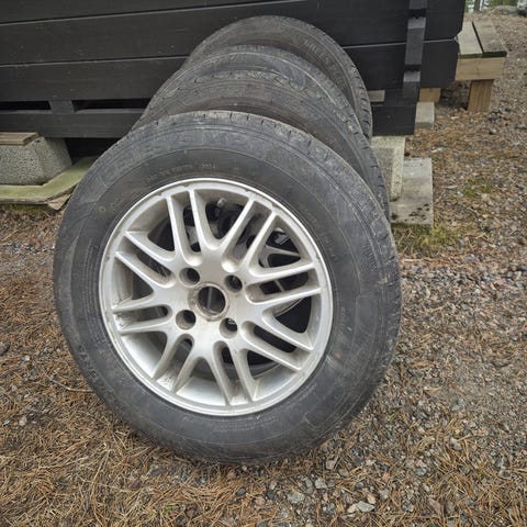 Myydään hyvät, mutta iäkkäät vasta tasapainoitetut kesärenkaat 195 65 15 peltivanteilla. Jako 5x112 ja keskireikä 57.1 eli Vag konsernin autoihin. Pintaa 6mm.