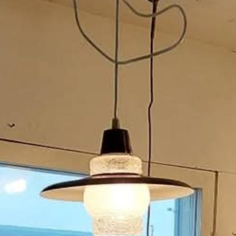 Valinten valmistama kattovalaisin, 50 - 60 luku. Varjostin metallia, halkaisija n. 27 cm. kupu lasia, korkeus n.17 cm. Valaisin kaikilta osin ehjä ja toimiva.