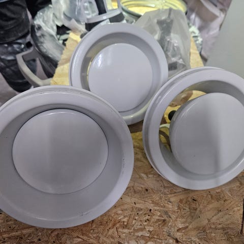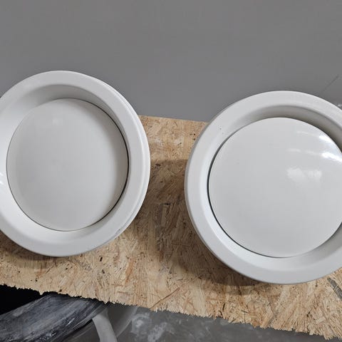 FläktGroup CleanVent KT8-125-C on 125 mm pyöreä venttiilisetti. Settiin kuuluu valkoinen venttiili sekä rei’itetty valkoinen etulevy/suoja. Tuote soveltuu ilmanvaihtojärjestelmiin, joissa käytetään 125 mm kanavakokoa, esimerkiksi asuin- tai toimistotilojen tulo- tai poistoilmaventtiiliksi.