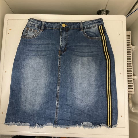 Kiva vaaleammansininen farkkuhame, edessä napitus helmaan asti. Ei vikoja, jäänyt teinille pieneksi. Vyötärön halkaisija 34 cm napit kiinni, helman pituus 112 cm. Kissatalous. Nouto tai postitus postikuluja vastaan.