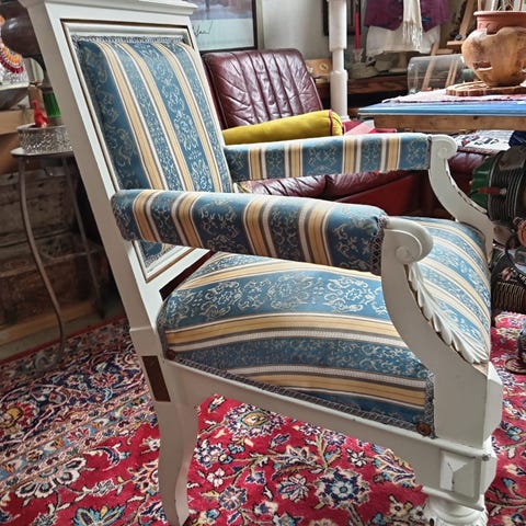 Jyskistä ostettu 2 vuotta vanha. Jalat maalattu mustaksi.Vaalean harmaa.