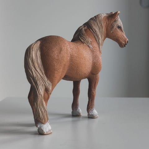 Kulumaa ja jälkeä paljon. Poskessa ja harjassa vähän punaista jälkeä. Rambon tallissa kulkee nimellä Cash.