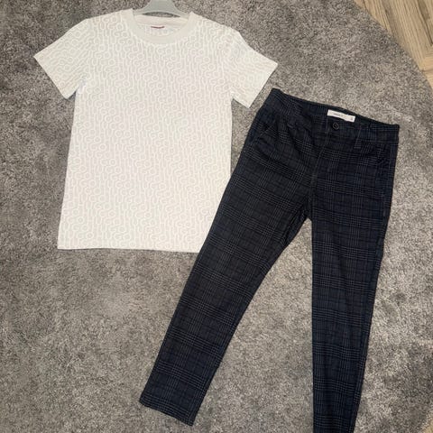 Hieno Batman-huppari (110-116) ja kahdet Lindex farkut. Hupparin alareunasta löytyi pieni tahra (näkyy kuvassa) ja toisten farkkujen polvitikkauksen kohdalla alkavaa reikää. Muuten hyvä kunto.