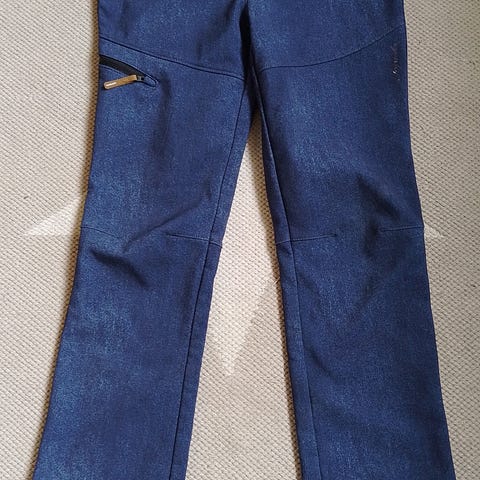 Siistikuntoiset mustat softshell-housut koko 140. Hyvät esim. kouluun ulkohousuiksi kapean mallinsa vuoksi. Meille käytettynä tulleet mutta en bongannut mitään vikoja. Meillä viettivät aikaa enemmän repussa kuin käytössä..