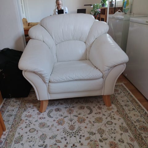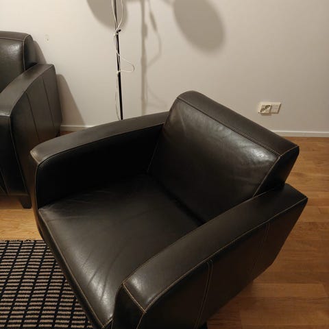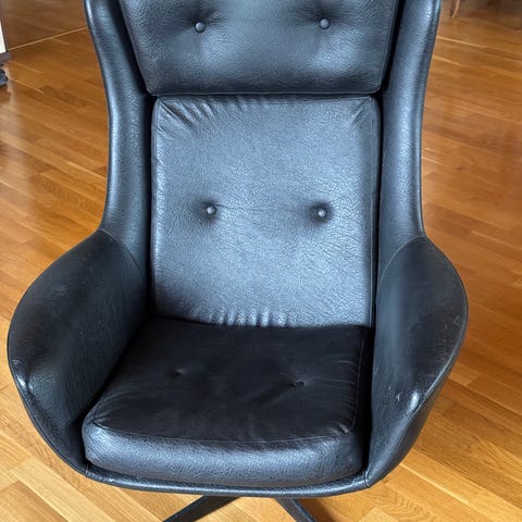 Myydään vanhempi nahkainen nojatuoli, pieni kallistustoiminto löytyy sekä toimii.