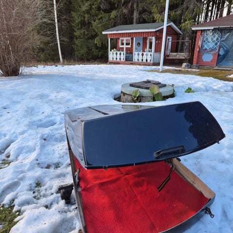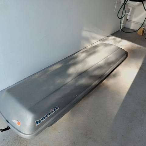 Leveä suksiboksi auton katolle. Väri musta. Sopii suksien ja muun matkatavaran kuljettamiseen auton katolla. Kiinnitys kattotelineisiin. Tarkemmat mitat ja kiinnitysjärjestelmä eivät käy ilmi kuvasta.