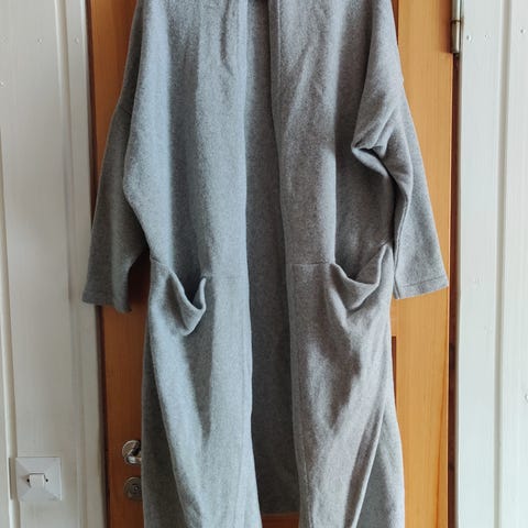 Papu desingin long -neuletakki.Väri tumman sininen, materiaali 100% merinovillaa. Kokomerkintä M/L, mutta mielestäni varsin reilua mitoitusta.