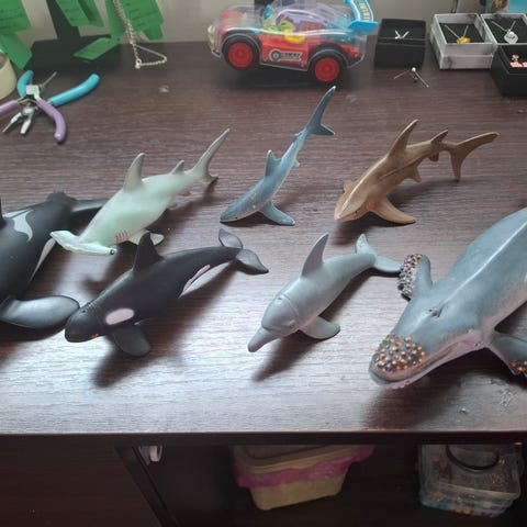 Vanhat kumieläimet ja juna. Kiinnityslenkit katkenneet. Kaikki yhteensä 12e sis postit pakettina.