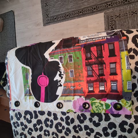 - Verhoissa on ollut samaa kuosia olevia nauhoja, jotka hukuksissa (jos löytyy, laitan verhojen mukana).