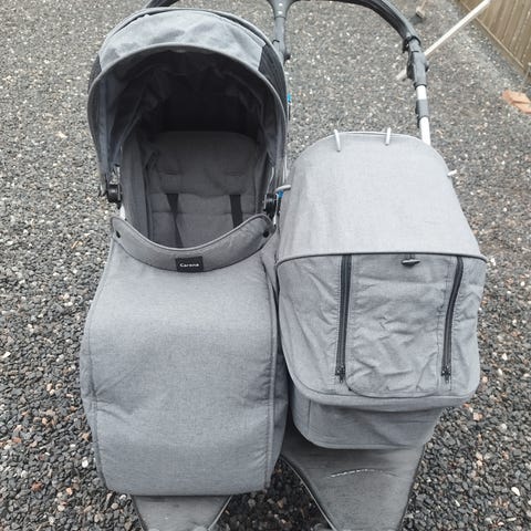 alle neljän kuukauden käytön jälkeen toisen istuimen jalkatuen säädin halkesi lapsen liukuessa sen päälle (katso kuva). Tein asiasta reklamaation, mutta mitään korvausta emme saaneet sillä kyseessä oli kulumisesta johtuva vika eikä valmistusvirhe. Toisessa istuimessa siis hieman omintakeinen viritelmä, joka on ollut onneksi ihan toimiva. Istuinosia säilytetty sisällä, runko ollut joko lasitetulla terassilla (kesällä) tai lämmitetyssä autotallissa. Istuinosat melko pienikokoiset 22kg painorajoituksesta huolimatta, joten en suosittele kovin pitkille lapsille (polvet ottaa kiinni turvakaareen). Muuten todella siistit, mutta hieman pölyiset säilytyksestä. Mukaan 2 x kevytlämpöpussit + lisäosana ostettu tavarakorin suoja. Hajuton, eläimetön ja tupakoimaton talous. Vain nouto.